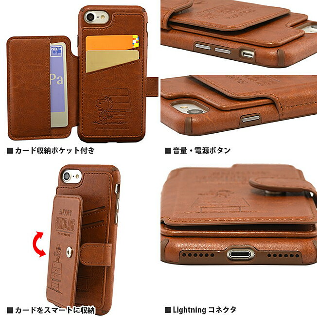 ピーナッツ iPhone8/7対応カードフラップケース ピーナッツデザインのiPhone8/7対応カードフラップケースが登場! 「ドッグハウス」「アストロ・ノーツ」「フライング・エース」の 3種類のタイプをご用意しました! 背面の扉の中にはカードポケットが3つついているから ICカードなどをスマートに収納できちゃう! 扉の外側・内側それぞれに施されたキャラクターの 型押しデザインがとってもかわいい! ケースを装着したままライトニングケーブルや イヤホンの接続が可能なので、充電し放題!音楽聞き放題! 裏面を覆うPU製iPhone8/7対応プロテクトケースです。
